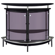 Upgrade your home entertainment options with this gorgeous, contemporary bar unit. With a convenient wine glass rack and ample storage space, it easily accommodates a wide variety of stemware, bar accessories, and cocktail ingredients. Graceful and glamorous, its curved silhouette is beautifully accentuated with gleaming chrome accents. A large, tempered glass top gives you plenty of prep space to mix delicious drinks for your guests. Complete with clear acrylic panels, this stylish unit allows you to show off your collection of fine wines and spirits in style. Key Features: • Freestanding home bar with curved frame and contemporary white finish • Clear tempered glass top and shelf offer strength and a polished presentation • Chrome-finished metal support adds brightness and visual balance • Integrated stemware rack and open shelving for barware and bottles • Clear acrylic panels create a sleek enclosure while keeping items visible • Built with acrylic, tempered glass, engineered wood, and chrome-plated steel
