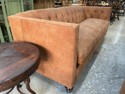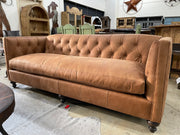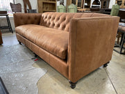 Crafted with exceptional quality and timeless design, this Leather Tufted Sofa by Mayo Furniture brings refined comfort and classic sophistication to any space. Made in Texas and upholstered in 100% genuine leather, it showcases a rich, warm tone with natural variations that highlight the beauty and character of authentic leather.