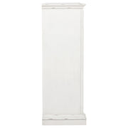 Timeless in spirit and refined in detail, this five-drawer chest evokes quiet charm and lasting beauty. A vintage white finish softens its stately frame, while molded edges and antique bronze ring pulls add character and depth. Designed with thoughtful craftsmanship, it offers spacious storage and smooth functionality. Built from poplar, engineered wood, and veneer, it brings elegance and purpose to the bedroom. Key Features: • Five-drawer chest with classic molding and clean lines for graceful bedroom storage • Vintage white finish offers a soft, aged look with traditional character • Antique bronze ring pulls add warmth and contrast to the light wood tone • Spacious drawers glide smoothly and are crafted with thoughtful construction • Top drawer is felt lined to protect delicate accessories and essentials • Built from poplar, engineered wood, and veneer for enduring style and strength
