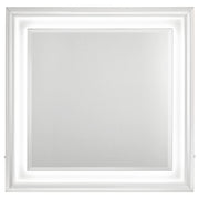Crisp white high gloss and sculptural textures define this modern bedroom set, blending sleek surfaces with dimensional details. Geometric drawer fronts feature ribbed V-patterns and polished chrome pulls, while all drawers glide smoothly on 45mm metal extension hardware. The headboard stands out with chevron-tufted white faux leather framed by soft white LED trim. Completing the ensemble, a coordinating LED dresser mirror adds ambient glow and polished symmetry to the space. Elevated on chrome legs, this set is a showcase of contemporary form and function. Key Features: • White high gloss bedroom set with sculpted drawer fronts and chevron-tufted LED headboard • LED dresser mirror adds ambient lighting and visual symmetry to the modern design • All drawers include 45mm metal extension glides for smooth and reliable performance • Top drawers are fully lined in black felt to protect valuables and add elevated utility • Chrome U-shaped pulls and tapered acrylic legs provide sleek contrast and support • Crafted from engineered wood and faux leather for durability and shine