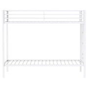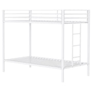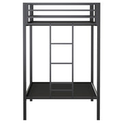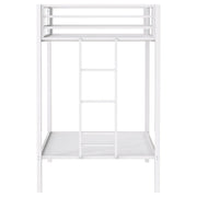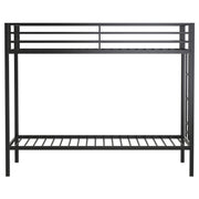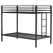 Built for flexibility and durability, this modern metal bunk bed blends clean lines with a space-saving design. A secured upper guardrail and integrated ladder support safe sleeping arrangements for shared rooms or compact spaces. Crafted from steel, the frame delivers lasting strength and sleek utility. Perfect for maximizing sleeping capacity in kids’ bedrooms, guest quarters, or multi-use rooms. Key Features: • Twin over twin bunk bed in black metal offers a compact, streamlined vertical frame design • Clean lines and slim profile maximize sleeping space in shared or small bedrooms • Integrated vertical ladder provides easy access to upper bunk and saves floor space • Upper bunk includes full-length guardrails to ensure safe and secure sleep support • Constructed from steel for strength, stability, and long-term reliability • Modern bunk bed design fits well in youth rooms, dorms, or multi-functional spaces