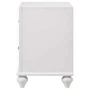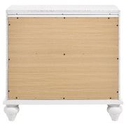 Add a touch of glamorous charm to your bedroom with this two-drawer nightstand. A clean white finish pairs beautifully with glittery acrylic drawer panels, creating a dazzling centerpiece beside the bed. Faceted crystal hardware enhances the sparkling effect, while sculpted bun feet add classic elegance. Built with solid rubberwood, engineered wood, and okume veneer, this nightstand blends durability with modern style. Two spacious drawers provide functional bedside storage with a chic flair._x000D_ Key Features: • Nightstand with white finish and glamorous details for chic bedroom appeal • Glittery acrylic drawer panels add sparkling texture and bold visual contrast • Faceted crystal hardware gleams against the smooth white frame construction • Two drawers offer ample storage to keep essentials organized bedside • Frame built with solid rubberwood, engineered wood, and okume veneer accents • Sculpted bun feet complete the design with timeless and elegant character