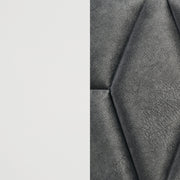 Bring geometric detail to your bedroom with the charming hexagon motif featured on this modern upholstered bed. Offering a contemporary look and feel, it creates a stylish focal point with its rich contrast of color and texture. The padded headboard offers excellent comfort and dark gray fabric upholstery. A streamlined wood frame adds a bright white finish to the rectangular head and footboards, creating an open, airy look. This stylish bed is complete with black accents in the base of the footboard and requires a foundation for use.