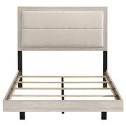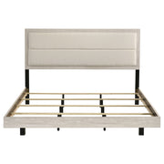 This contemporary bed is the perfect fusion of style and comfort, designed to bring a cool, modern vibe to any bedroom. With its unique "floating" effect, it creates a sense of spaciousness and sophistication. The headboard is upholstered in a soft, cream bouclé fabric, adding a touch of texture and warmth that complements the bed's rustic cream finish. Crafted from rubberwood and engineered wood with a rough-sawn, white-washed engineered paper veneer, this bed showcases a Yin & Yang contrast between rustic and refined design elements. Key Features: • "Floating" queen bed design for a sleek, contemporary look • Headboard upholstered in cream bouclé fabric for added softness and style • Rustic cream finish with rough-sawn, white-washed engineered paper veneer • Made from durable rubberwood and engineered wood • A perfect blend of modern and rustic aesthetics