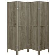 This four-panel folding screen adds privacy and visual interest to any space. Designed with clean lines, it features solid wood-inspired panels framed by a sturdy structure that highlights its modern yet rustic appeal. Hinged panels allow versatile positioning, whether fully extended or angled to suit your needs. Constructed from engineered wood, laminate veneer, and solid pine, this piece offers lasting durability while providing a stylish solution for dividing or accenting open areas. Key Features: • Four-panel folding room divider in rustic nutmeg with visible wood grain detail • Clean linear frame contrasts with warm wood panels for modern rustic style • Hinged design allows flexible positioning for privacy or decorative display • Durable construction of engineered wood, laminate veneer, and solid pine • Sturdy FSC-certified wood frame provides strength and everyday reliability • Ideal for dividing shared spaces or adding structure to open living areas