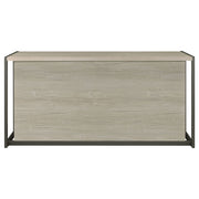 Elevate your contemporary home office and organize your supplies with this spacious contemporary office desk, featuring a light and bright whitewashed grey finish that maintains a clean look and feel to the space. Four drawers, including a deep file drawer, allow you to organize important documents, fastened with gunmetal finished pulls that coordinate with the grey finished sled style base. Key Features: • Computer desk in whitewashed grey finish with four drawers • One file drawer and three utility drawers for office essentials • Gunmetal hardware and sled legs offer industrial contrast • Wide desktop accommodates tech and multitasking activities • Durable engineered wood construction ensures long-lasting use • Modern rustic style ideal for clean and neutral office settings