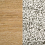 This ladder back dining side chair offers a relaxed blend of rustic character and contemporary ease. Crafted from solid wood in a washed oak finish, it features softly rounded posts and legs that bring warmth without ornate details. The cushioned seat is upholstered in a cozy oatmeal-colored bouclé fabric, providing both textural charm and everyday comfort. Built to support daily use, its clean silhouette and sturdy construction make it a versatile and enduring seating choice. Key Features: • Dining side chair with ladder back design and gently rounded edges for rustic appeal • Washed oak wood finish highlights clean lines with a fresh, modern farmhouse tone • Soft padded seat upholstered in textured oatmeal bouclé for cozy daily comfort • Rounded posts and leg corners soften the frame while enhancing stability • Crafted from solid rubberwood and engineered wood for lasting support • Built to withstand busy family dining with relaxed charm and timeless quality