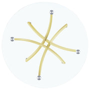 This round dining table offers a striking balance of clarity and form. A clear tempered glass top creates an airy presence, while the sculptural asterisk-style base adds dramatic visual interest. Crafted from heavy gauge metal, the base is electroplated in a reflective brass or chrome finish, providing a luxurious touch to its contemporary silhouette. A bold yet functional centerpiece for modern dining spaces. Key Features: • Round dining table with sleek clear tempered glass top for modern, minimal impact • Electroplated chrome asterisk-style base offers sculptural structure and high shine • Heavy gauge metal base adds stability and visual contrast to the light glass top • Tempered glass is easy to clean, heat-resistant, and made for daily durability • Reflective chrome finish enhances the open look of modern dining spaces • Perfect centerpiece for contemporary homes, lofts, or minimalist dining rooms