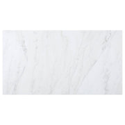 Bring together family and friends at this modern rustic style dining table set. The table features a rectangular, thick, white marble top that is spacious enough for six people. Sleek open and airy trestle base with a center punch out, rustic espresso striking color combination lends a dramatic touch and grounds the room elegantly. The set of chairs with a rolled backrest with button-tufted details lends a traditional aesthetic to a space. Also, bringing to your home the classic elements is a padded seat with individual nailhead trim that offers a charming detail. Key Features: • Refusing to choose between style and function, this rectangular table offers a place to share a meal with your family • The table is supported by an oak veneer panel base with a marble table top • An open trestle base lends a modern industrial flair • Plushily padded side chairs are adorned with rolled backs and button-tufted upholstery with bold nailhead trim