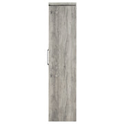 This tall curio cabinet makes for an impressive addition to a well-appointed home. The charming cabinet has classic sense of style and design. Two glass doors with contrasting dark hardware give the curio a distinguished appearance. The doors provide easy access to eight compartmentalized shelves offering abundant storage space. Finished in grey driftwood for a stylish look appropriate for any living room or den. Key Features: • Tall accent cabinet with a beachy grey driftwood finish • Two glass doors reveal eight adjustable interior compartments • Black hardware adds contrast and industrial-inspired detailing • Ideal for storage or display in coastal or casual interiors • Crafted from engineered wood, glass, and laminate veneer • Includes tip-over restraint for stability