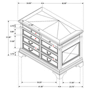 A stately upgrade for the traditional filing cabinet. This piece is crafted for classy office spaces. An expansive tabletop with molding accents offers an elegant option to place office items. Eight drawers flaunt round knobs and traditional style bar pulls. This piece is finished in burnished oak and supported on bracket style feet. Key Features: • File cabinet features five drawers with varied storage and filing configuration • Burnished oak wood finish adds a traditional look to home office or executive setting • Top drawers are felt-lined and include removable dividers for organized small items • Lower file drawers accommodate legal and letter-size documents with smooth glide rails • Bracket feet and carved trim details highlight vintage-inspired craftsmanship • Constructed with rubberwood, engineered wood, particle board, and white oak veneer