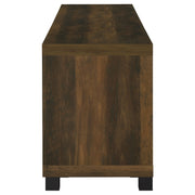 Upgrade your entertainment space with this 79-inch TV stand, featuring a contemporary boxy silhouette and smooth surfaces. The distressed pine finish enhances its rustic appeal, while the glass-paneled cabinet doors add a refined touch. Adjustable shelves provide customizable storage for media devices, gaming consoles, and décor. The spacious tabletop supports TVs up to 85 inches, making it ideal for both stand-alone and wall-mounted configurations. Black metal legs and sleek black handles create a bold contrast, offering an industrial-inspired accent to any modern or farmhouse-style home. Key Features: • Modern 79-inch TV stand with sleek glass doors for a sophisticated touch • Distressed pine wood finish brings rustic warmth to contemporary spaces • Adjustable shelves offer flexible storage for electronics and accessories • Engineered wood and metal construction ensures long-lasting durability • Supports TVs up to 85 inches, perfect for large entertainment setups • Black metal legs and handles enhance the industrial-chic aesthetic