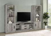 Tall and slender, this modern media tower is the perfect complement for your entertaining needs in both compact and larger spaces. Organize media, books, and implements on shelves and interior shelves, staying organized and uncluttered. Melamine construction features a distressed weathered gray finish with grain-like markings, offering rustic vibes. Find space on three fixed shelves and one adjustable shelf, all ready to separate and store gaming supplies, media, or books. A single black finished metal hardware pull offers an ideal match. Key Features: • Modern media tower suitable for various space sizes • Organize effortlessly with shelves and interior compartments • Distressed weathered gray finish for rustic charm • Three fixed and one adjustable shelf for versatile storage • Single black-finished metal hardware for a cohesive look