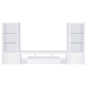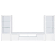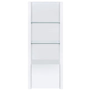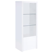 Extend a media console or add easy display space in a den or bedroom with this contemporary tower. Designed to accompany the matching media console, the tower adds a lower cabinet with shelving inside, and a pair of glass display shelves. It’s the perfect solution when both hidden and accessible storage are desired. A crisp white finish adds to the modern look and complements virtually any space. Melamine paper surfaces are designed for durability, perfect for everything from games and media to charming decor. Key Features: • Contemporary tower adds lower cabinet and glass display shelves • Crisp white finish complements any space • Melamine paper surfaces for durability • Perfect for hidden and accessible storage • Ideal for games, media, and decor