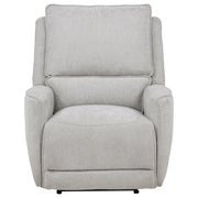 Sink into indulgent comfort with this power recliner, tailored for quiet moments and deep relaxation. Draped in soft dove grey chenille, it features sculpted cushions and gently rounded arms for an inviting silhouette. At the touch of a button, the seat extends smoothly, offering effortless recline. A built-in anti-pinch safety function halts motion when resistance is detected, making it a haven of both comfort and reassurance. Key Features: • Power recliner with sculpted form and plush padding offers cozy, modern comfort • Dove grey chenille upholstery adds softness with a clean monochrome finish • Push-button recline delivers smooth motion for customizable lounging • Supportive seat and back cushions cradle the body in relaxed alignment • Anti-pinch mechanism stops recline when resistance is detected for safety • Wrapped in soft chenille over foam with a durable wood and metal frame