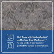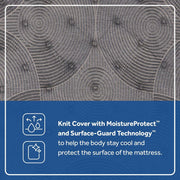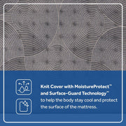 - A durable, medium knit-fabric cover with moisture-wicking MoistureProtect™ helps the body stay cool and comfortable, and Surface-Guard Technology™ protects the mattress surface from odors and staining caused by bacteria and common allergens.