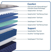 Our most premium innerspring model combines the enhanced support of our encased coil system with the high-density DuraFlex™ Coil Edge system for increased durability. This mattress includes multiple layers of our SealyComfort™ and SealySupport™ gel foams to maximize comfort and support, plus an added layer of memory foam in the CoreSupport™ center to provide additional pressure-relieving support for the heaviest part of the body.