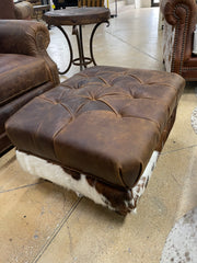 Bovine New Zealand Leather and Cowhide Tufted Ottoman by Mayo Furniture