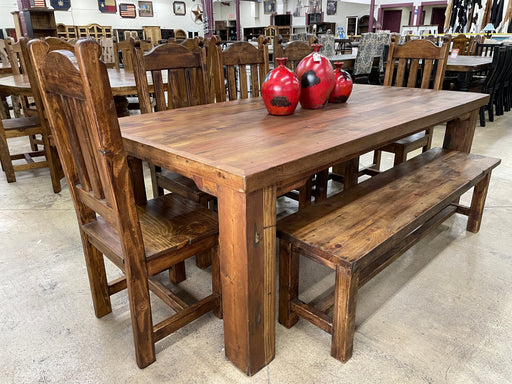 Reclaimed Wood 84” Dining Table with 5 Chairs and Bench