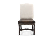 Riviera Chairs with leather seat and Linen back Explore the elegance of Riviera Chairs with leather seat and linen back, perfect for your Monterrey rustic furniture collection.