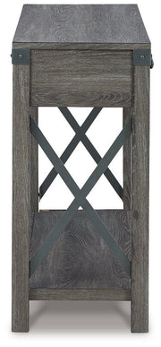 Open the door to modern farmhouse style with this console table. The beautiful woodgrain look and classic crossbuck metal accents are a cool touch, while the lower shelf provides surface space for fashionable home accessories. A pair of smooth-gliding drawers is the answer to the daily, where-are-my-keys question.