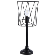 Infuse your space with industrial flair using this bold table lamp, featuring a wire cage shade that highlights a vintage-inspired Edison bulb. The slender torch-style base and tiered round platform create a sleek silhouette. Perfect for desks or accent tables, this metal lamp delivers both character and function with a two-way switch for adjustable lighting. Key Features: • Industrial-style table lamp with bold open wire cage shade design • Exposed bulb enhances the vintage aesthetic with Edison-style charm • Slim torch-style body stands on a classic round tiered metal base • Two-way switch allows flexible lighting for ambiance or task use • All-metal construction ensures durability and modern appeal • Ideal for home offices, side tables, or loft-inspired interiors