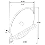 Transform your daily routine with this elegant two-piece vanity set, combining natural beauty and functional design. The vanity table features a smooth sand wash finish that highlights the wood grain, complemented by aged brass knobs and slim metal accents for a refined touch. Two spacious drawers keep beauty essentials neatly organized, while the wall-mounted round mirror includes a built-in jewelry tray ideal for perfumes and accessories. Together, they create a serene and sophisticated space for everyday preparation._x005F_x000D_ Key Features: • Two-piece vanity set with table and matching wall-mounted mirror design • Sand wash wood finish showcases rich texture and natural coastal appeal • Round mirror includes a built-in jewelry tray for perfumes or accessories • Two drawers with metal glides provide smooth, convenient storage function • Aged brass knobs and support bars add warmth and mid-century character • Crafted from rubberwood, engineered wood, metal, and ash veneer materials