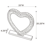 This heart-shaped table mirror blends glam style with practical lighting, perfect for vanities or dressing areas. The mirrored frame features an inset of faceted acrylic crystal inlay that catches light beautifully, while integrated LED illumination adds clarity for grooming or makeup application. Its freestanding design and decorative shape make it as functional as it is eye-catching, ideal for bedroom surfaces or beauty stations. Key Features: • Tabletop vanity mirror with a heart-shaped silhouette for decorative charm and function • Mirrored frame adds sleek shine and elevates the glam-inspired design • Inset acrylic crystal inlay creates a shimmering, textured border • Built-in LED lighting provides enhanced visibility for makeup and grooming • Freestanding base allows stable placement on dressers or vanity tops • Ideal for bedrooms, beauty stations, or glam-themed personal spaces