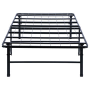 This simple transitional platform bed frame is both supportive and minimal. Easily storable and capable of folding, it can be pulled out when company visits. Its heavy gauge steel construction offers extra support, and has a black powder coated finish to protect against nicks while looking sleek and stylish. This bedframe can also be used as a standalone bed or to support a mattress to replace a box spring foundation. Included in this style are a variety of sizes to suit every mattress size. Key Features: • The epitome of simplistic convenience, this reliable folding bed frame in a black powder coated finish is a must-have platform base in every home • Innovative no-tool assembly makes this sturdy bed exceptionally portable and easy to store • Designed for long lasting durability and support while adding convenient underbed storage space for organizational versatility • Ideal as a standalone bed or inside a wood bed for mattress support, replacing the need for a box spring foundation • Unparalleled support for innerspring, foam, or any types of mattress you may have • Engineered with heavy gauge steel construction welded to create a strong foundation • Available in all bed sizes